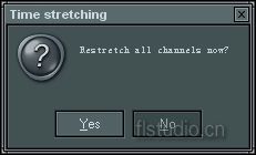 做过时间伸缩的Audio Clip在今后再改变速度时,FL Studio会询问是否自动做时间伸缩以保证速度吻合,此时选YES就是了,如下图。