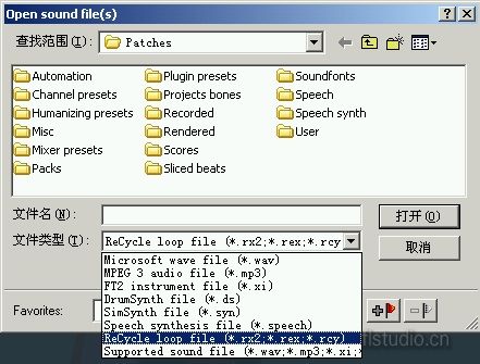 如今Fruity Slicer可以读取Recycle制作的REX2格式的Loop文件了,这应该归功于Propellerheads公开REX技术的举动。如下图所示,可读取rex2、rex、rcy格式的文件。