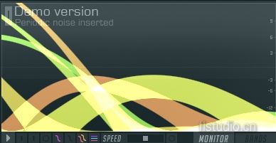 值得一提的是鼠标在频谱仪窗口的使用,MONITOR模式下点击左键可以暂停包络线进行分析(如下图,此时音乐继续),右键可以在MONITOR模式与BAND模式之间进行切换。在BAND模式下用左键可以上下调节EQ的增/减、左右调节频段的范围。