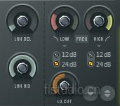 这里没什么好讲: LMH DEL:低中高频包络线的Delay(衰退)程度,只与图像显示有关; 五、其他功能 1、保存/对比功能,别以为下图这两个按钮是个装饰,左边的是保存预制功能(仅能保存一组),后面是调入/对比功能,可以让你迅速对两组(仅限两组)参数的效果进行A/B对比试听,这项功能在其他插件上并不多见,非常实用。